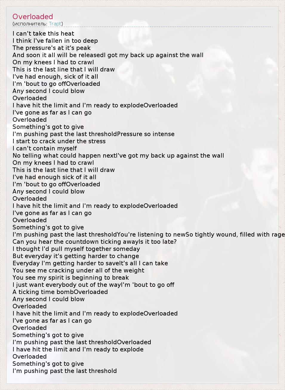 I'm pushing past the last thresholdYou're listening to newSo tightly wound, filled with rage