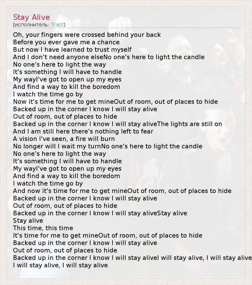 А как ты думаешь, о чем песня "Stay Alive" ?