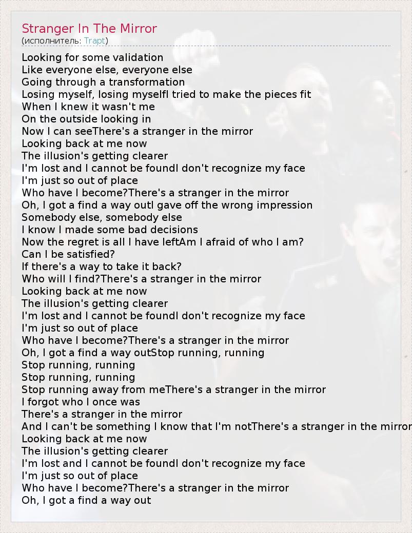 А как ты думаешь, о чем песня "Stranger In The Mirror" ?