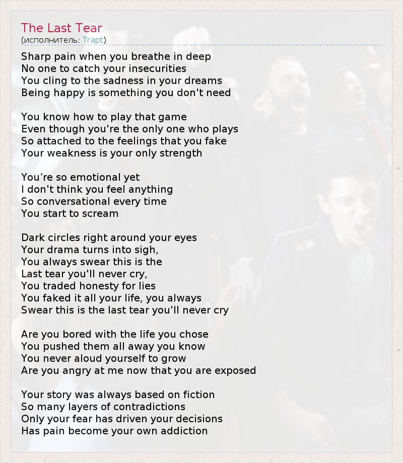 А как ты думаешь, о чем песня "The Last Tear" ?