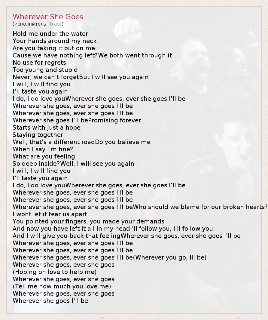 А как ты думаешь, о чем песня "Wherever She Goes" ?