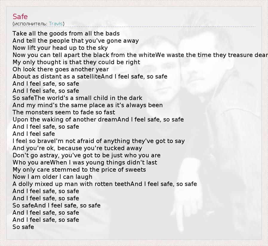 A dolly mixed up man with rotten teethAnd I feel safe, so safe