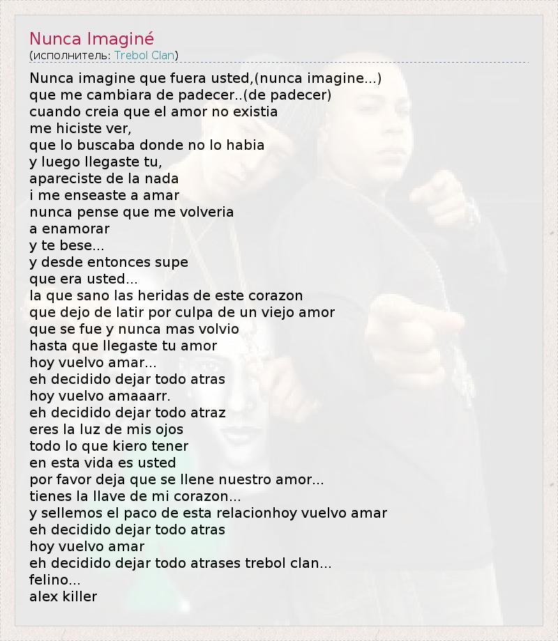 А как ты думаешь, о чем песня "Nunca Imaginé" ?