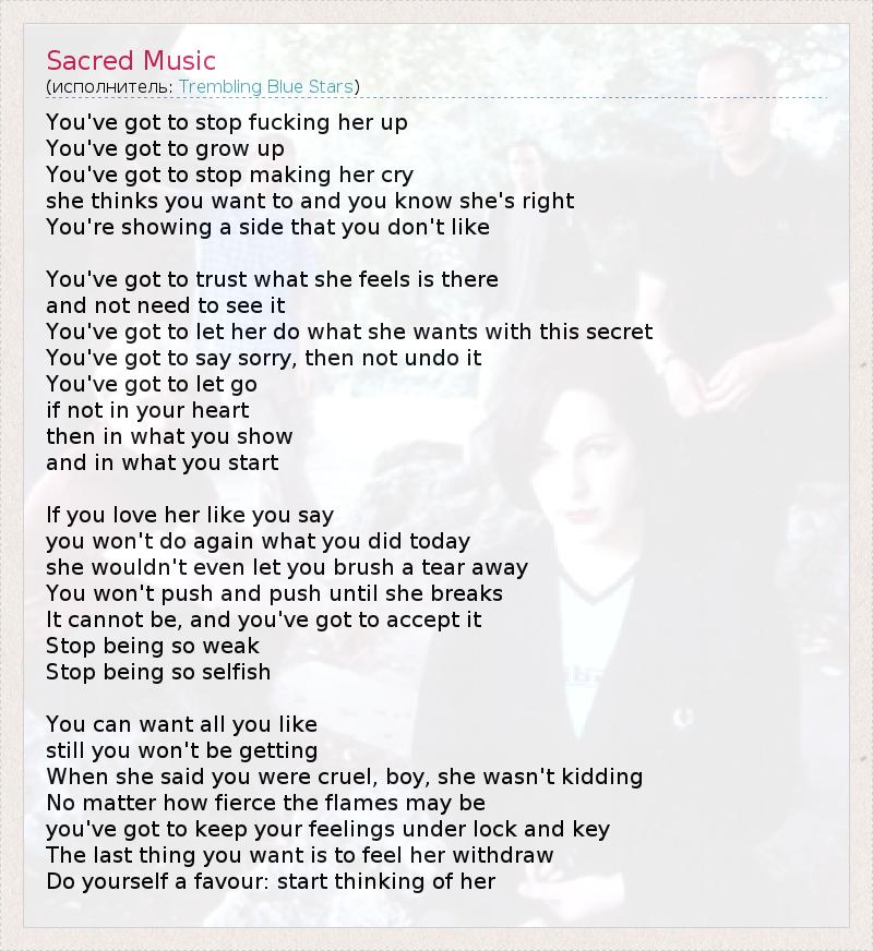 А как ты думаешь, о чем песня "Sacred Music" ?
