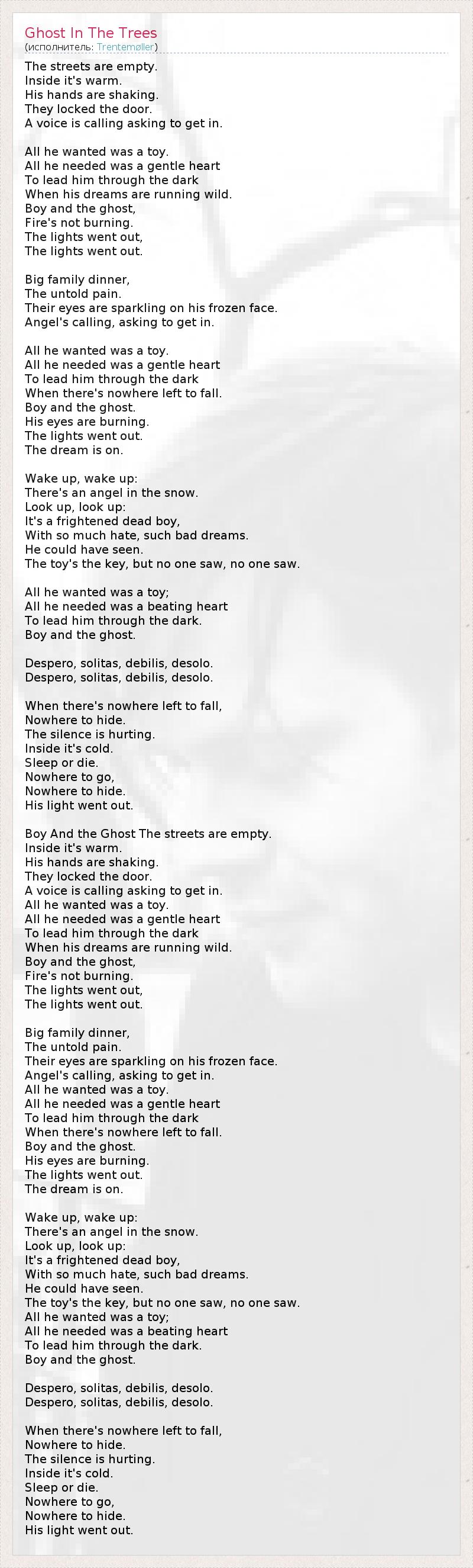 А как ты думаешь, о чем песня "Ghost In The Trees" ?