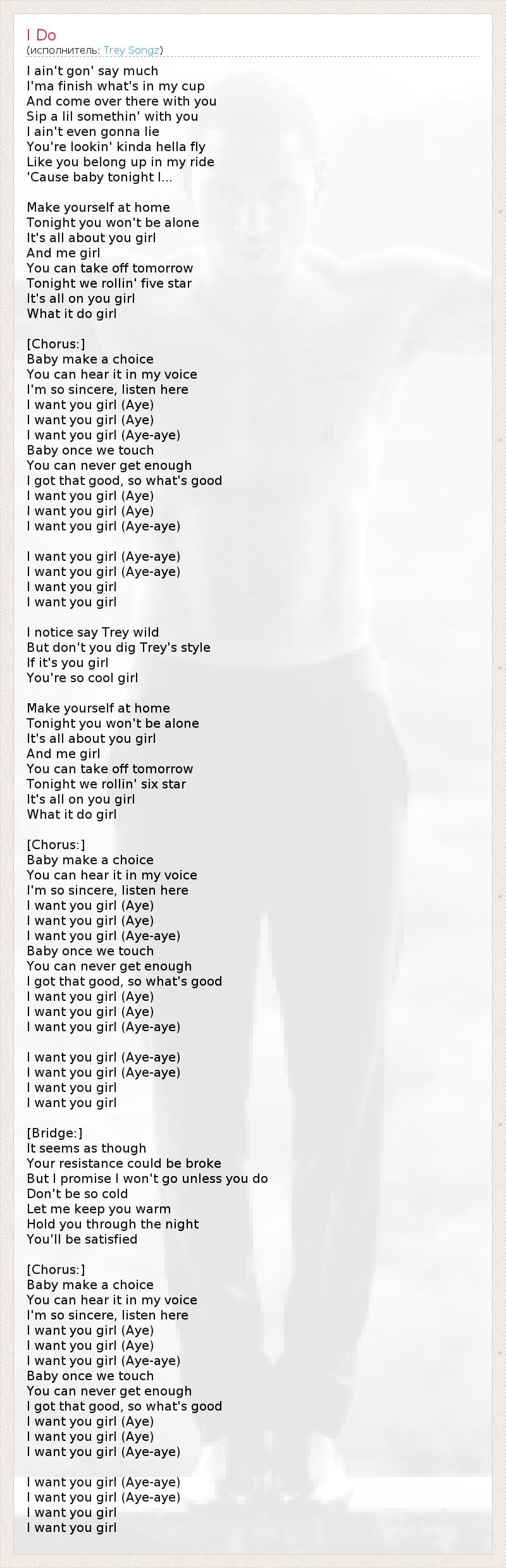 Это интересно:Трей Сонгз (англ. - Tremaine Neverson) родился 28.11.84, Вирджиния, США.В детстве слушал в основном хип-хоп, из R'n'B ему нравился только R. Kelly. Но когда друзья услышали, как он поёт, то уговорили его бросить рэп, и попробовать себя в качестве вокалиста. Что и сделал 15-летний Трей Сонгз.Мама отправила его на шоу талантов, где его заметил продюсер Troy Taylor, что и привело к заключению контракта с Atlantic... продолжение