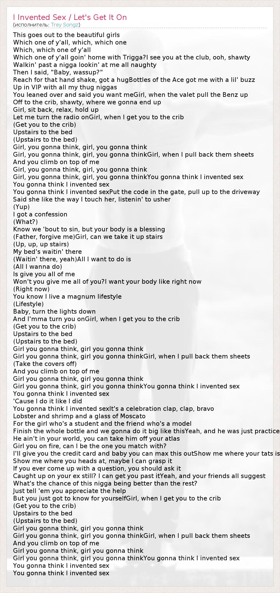 ГлавнаяИсполнителиTrey SongzI Invented Sex / Let's Get It On