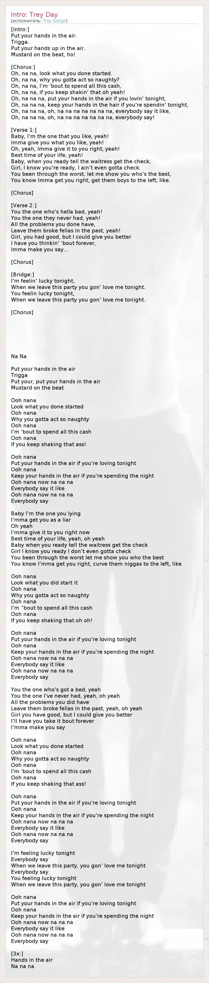 А как ты думаешь, о чем песня "Intro: Trey Day" ?