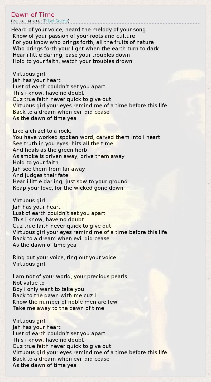 А как ты думаешь, о чем песня "Dawn of Time" ?