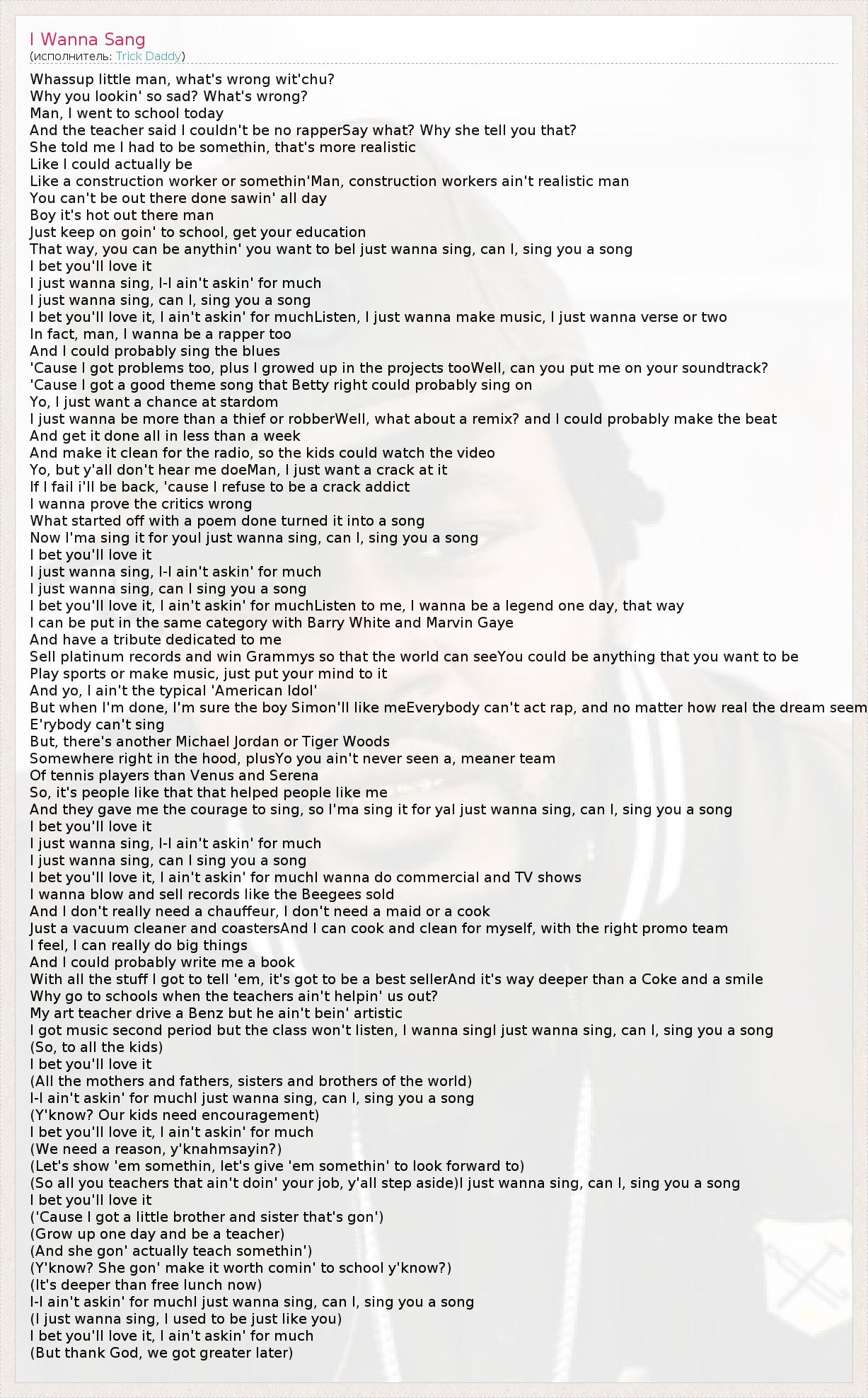 А как ты думаешь, о чем песня "I Wanna Sang" ?