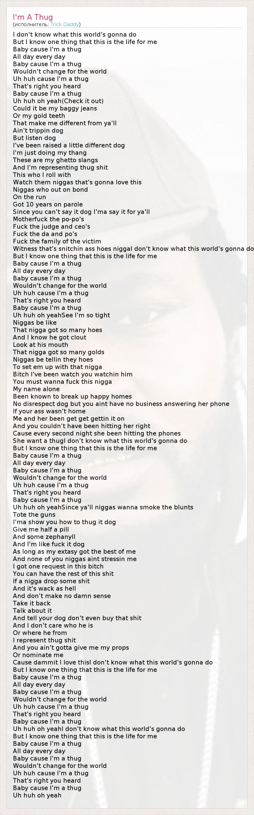 А как ты думаешь, о чем песня "I'm A Thug" ?