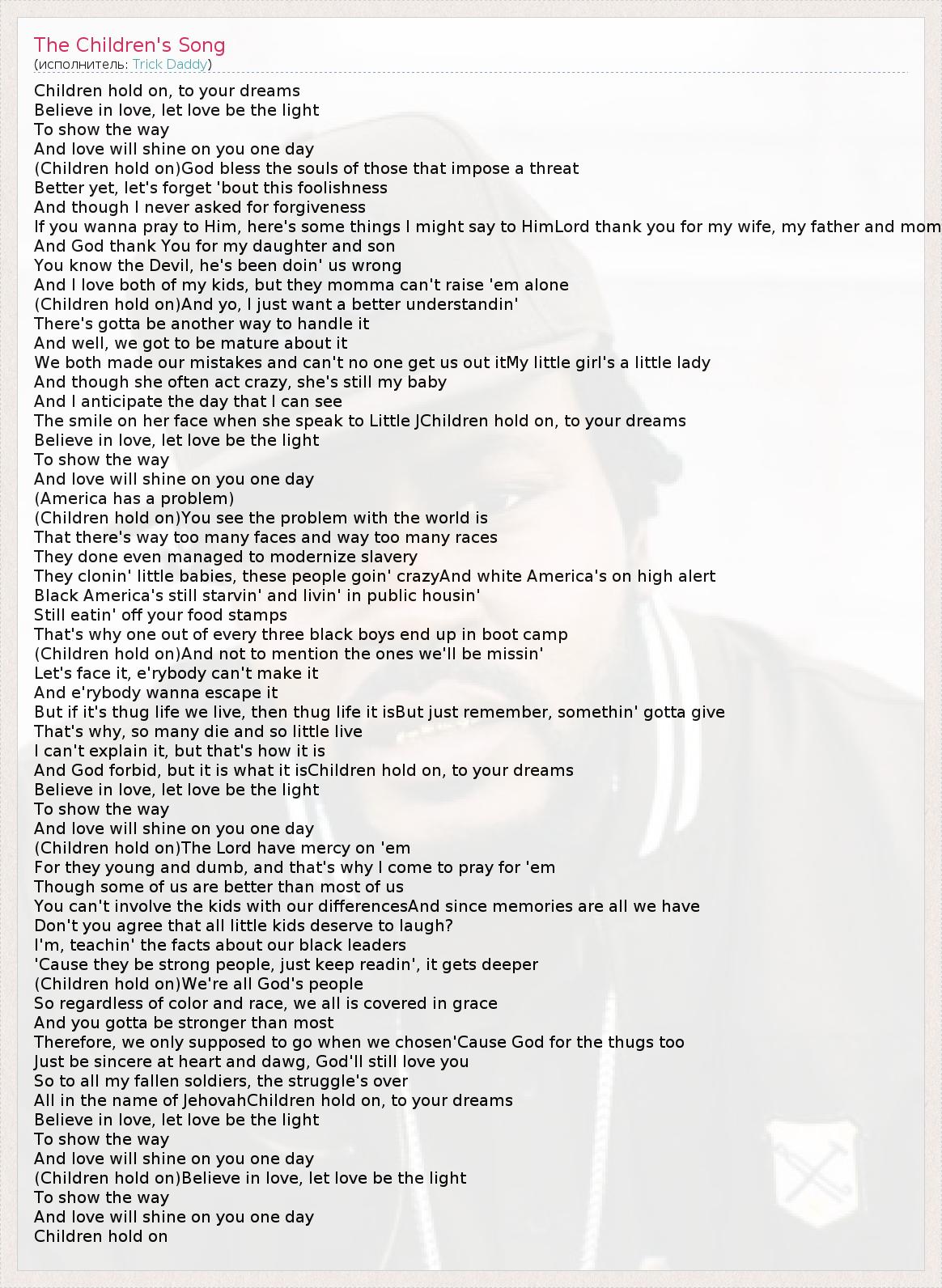 А как ты думаешь, о чем песня "The Children's Song" ?