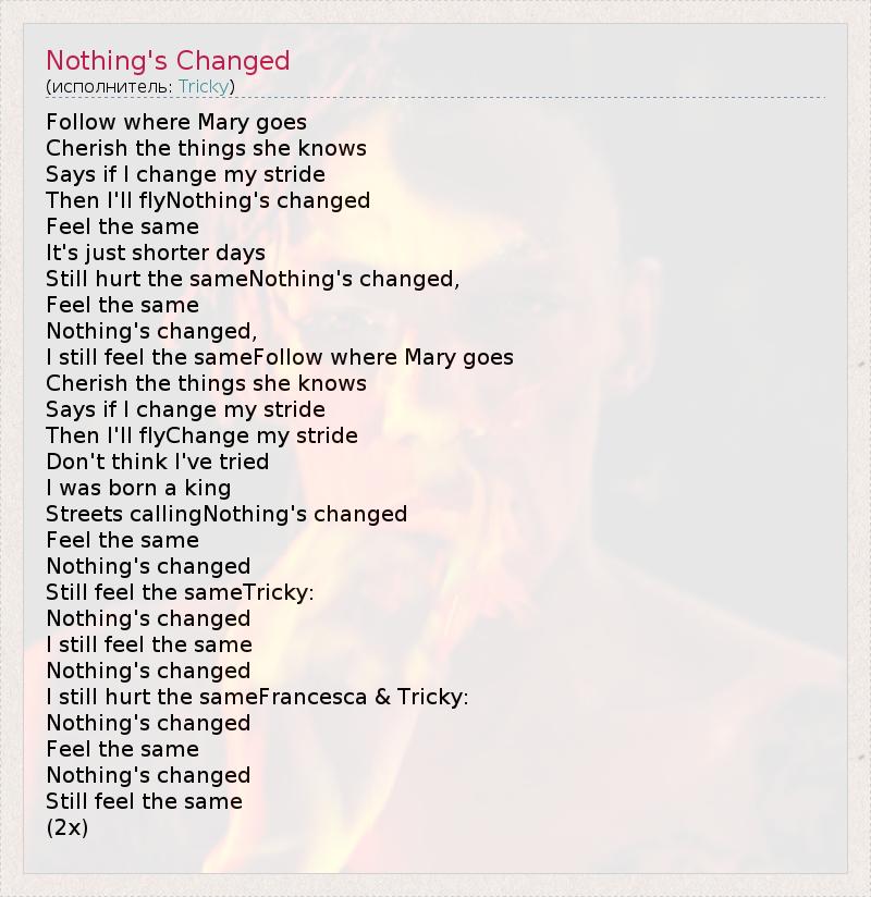 А как ты думаешь, о чем песня "Nothing's Changed" ?
