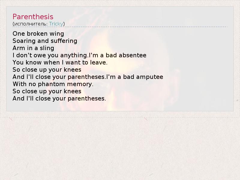 А как ты думаешь, о чем песня "Parenthesis" ?