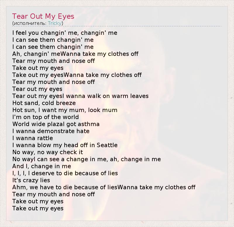 А как ты думаешь, о чем песня "Tear Out My Eyes" ?