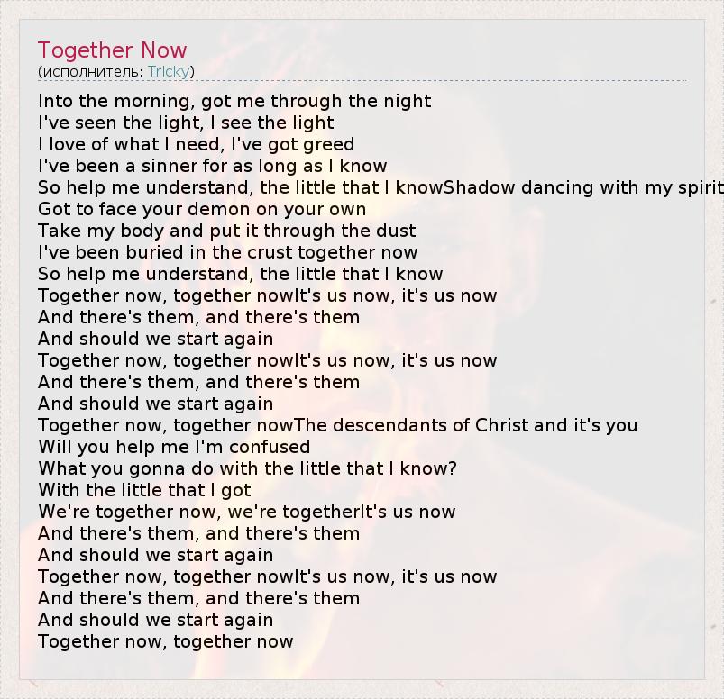 Это интересно:Adrian Thaws (это настоящее имя Трики) — британский trip-hop-музыкант, один из основоположников стиля. Его оригинальный вокальный стиль отличают полушёпот и совмещение пения с речитативом. Карьера в музыкеТрики присутствовал как приглашённый музыкант на ранних альбомах группы Massive Attack, но никогда не был официально... продолжение