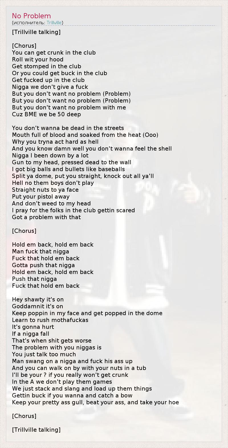 Это интересно:«Trillville» – рэп-группа из Атланты, США. Новое поколение стиля кранк. Революционеры в хип-хоп движении. В 1997 г., если члены «Trillville» были еще в девятом классе средней школы, рэп-проект завоевал нехилый статус – «Gods of Crunk», или «Боги Кранка». Член группы, обще как Dirty Mouth (дословно: черный рот) был лидером команды школьных барабанщиков и занимался написанием речетатива. Его друг и напарник по... продолжение