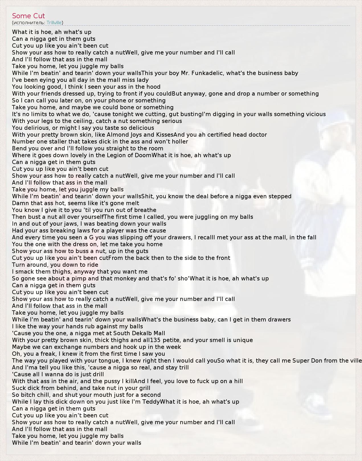 Это интересно:«Trillville» – рэп-группа из Атланты, США. Новое поколение стиля кранк. Революционеры в хип-хоп движении. В 1997 г., если члены «Trillville» были еще в девятом классе средней школы, рэп-проект завоевал нехилый статус – «Gods of Crunk», или «Боги Кранка». Член группы, обще как Dirty Mouth (дословно: черный рот) был лидером команды школьных барабанщиков и занимался написанием речетатива. Его друг и напарник по... продолжение