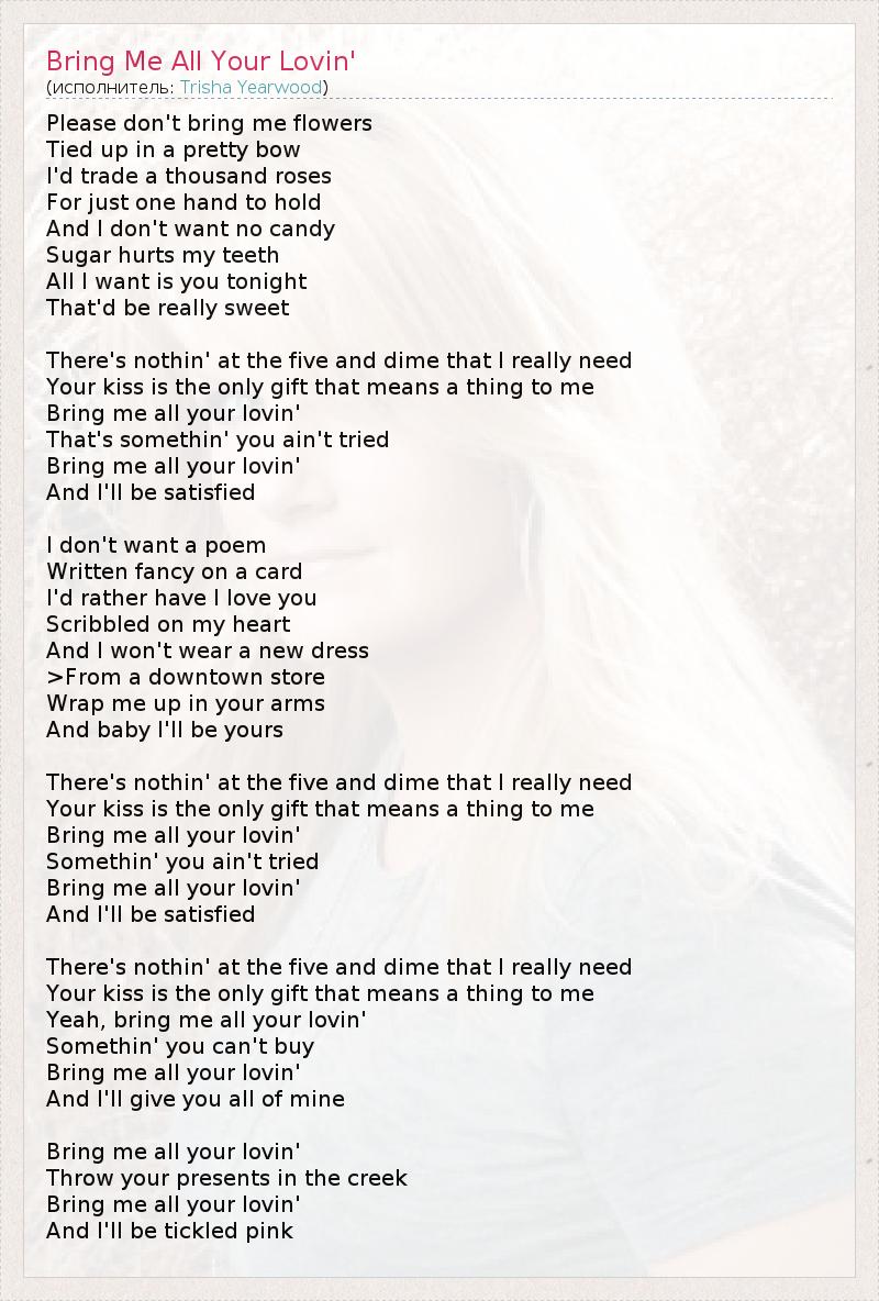 А как ты думаешь, о чем песня "Bring Me All Your Lovin'" ?