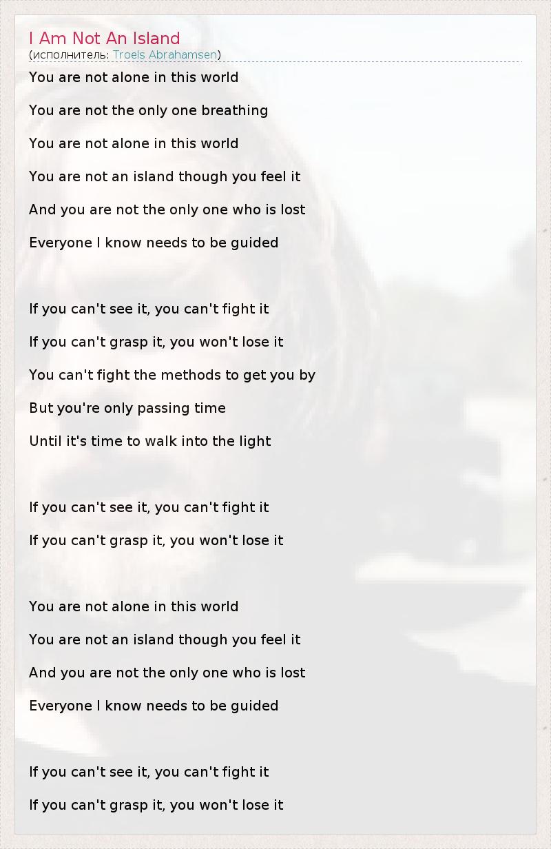 А как ты думаешь, о чем песня "I Am Not An Island" ?