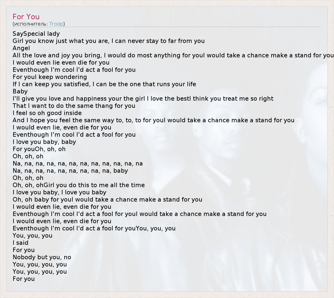 Eventhough I'm cool I'd act a fool for youI would take a chance make a stand for you