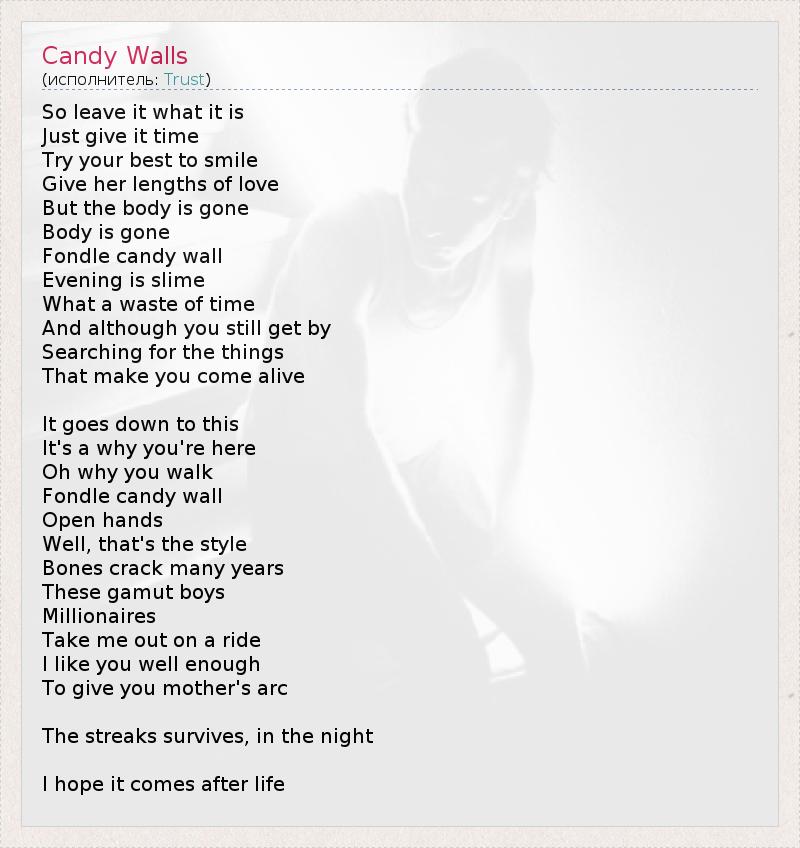 А как ты думаешь, о чем песня "Candy Walls" ?