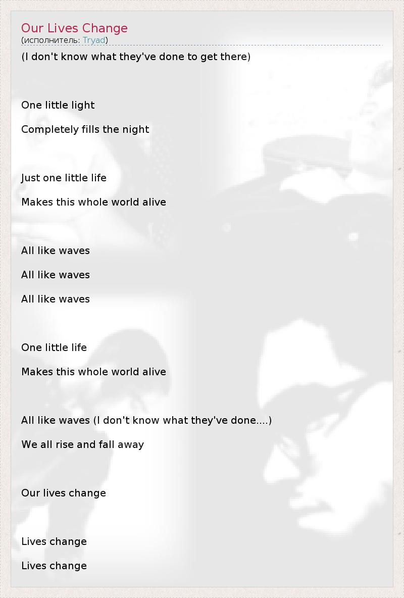 А как ты думаешь, о чем песня "Our Lives Change" ?