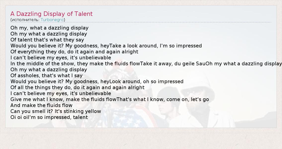 А как ты думаешь, о чем песня "A Dazzling Display of Talent" ?