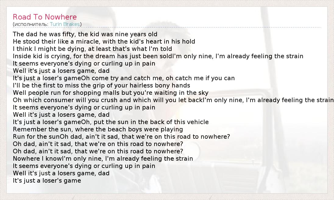 Oh dad, ain't it sad, that we're on this road to nowhere?