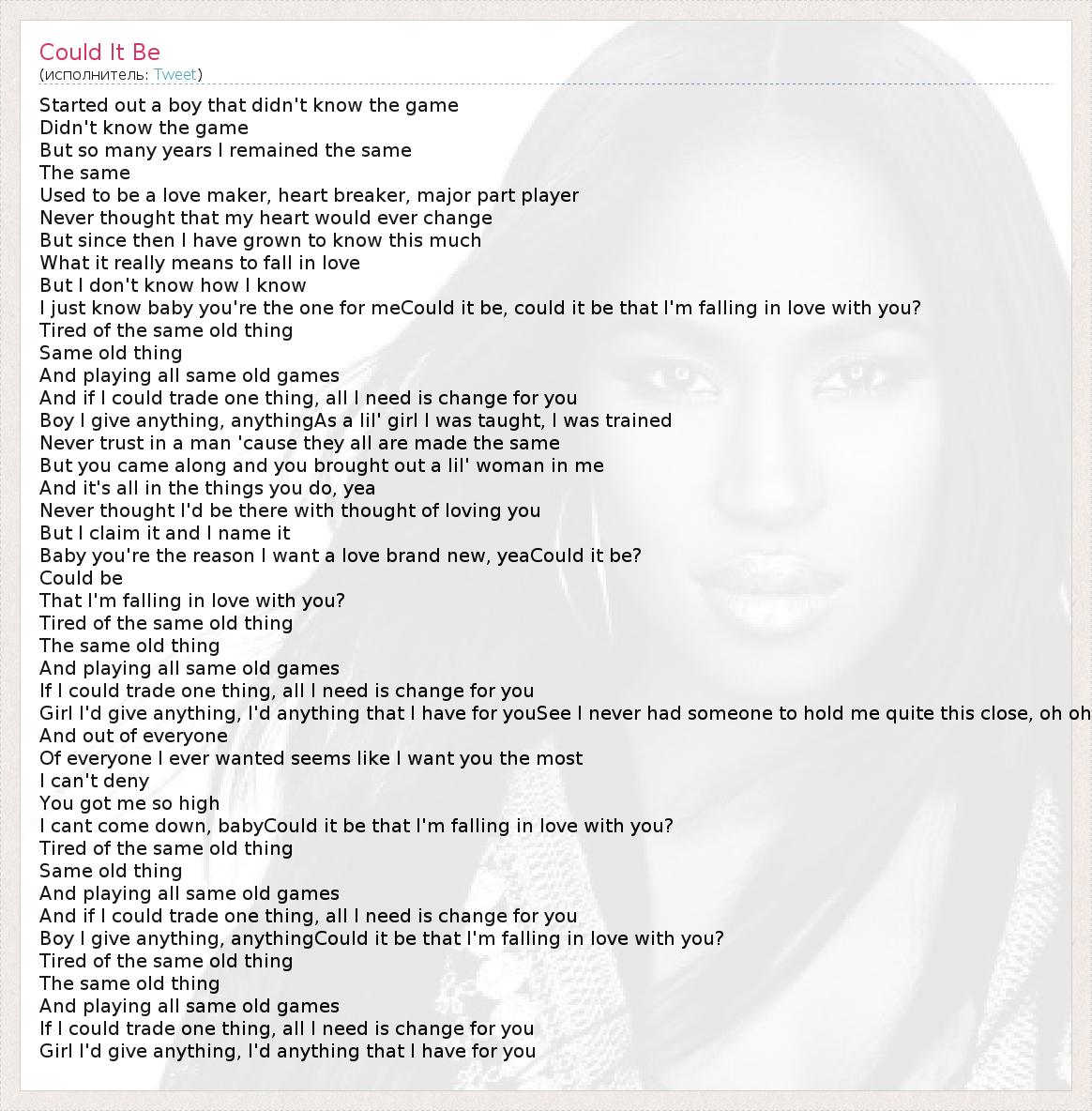 Boy I give anything, anythingCould it be that I'm falling in love with you?