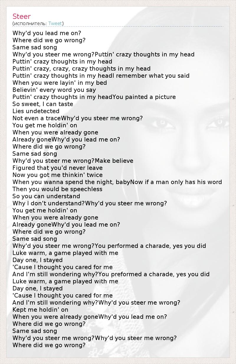 Why'd you steer me wrong?Puttin' crazy thoughts in my head