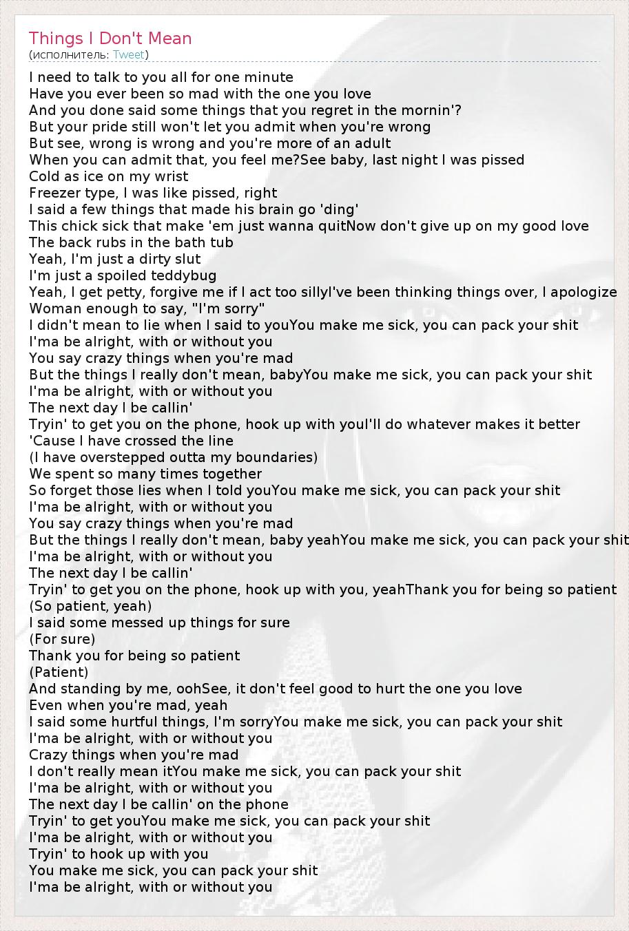 ГлавнаяИсполнителиTweetThings I Don't Mean