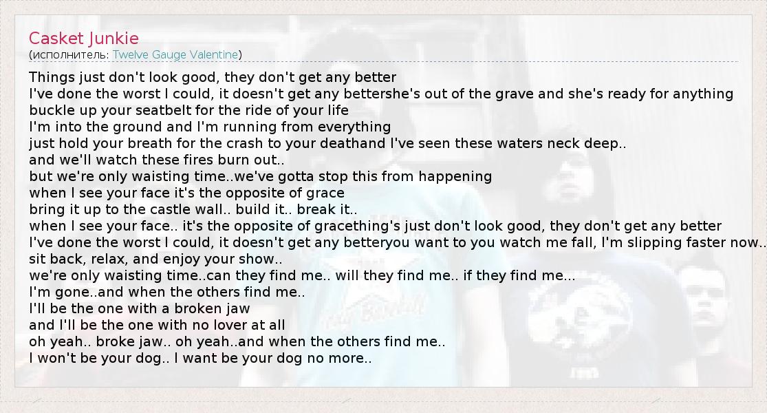 А как ты думаешь, о чем песня "Casket Junkie" ?