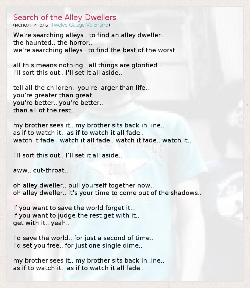 А как ты думаешь, о чем песня "Search of the Alley Dwellers" ?
