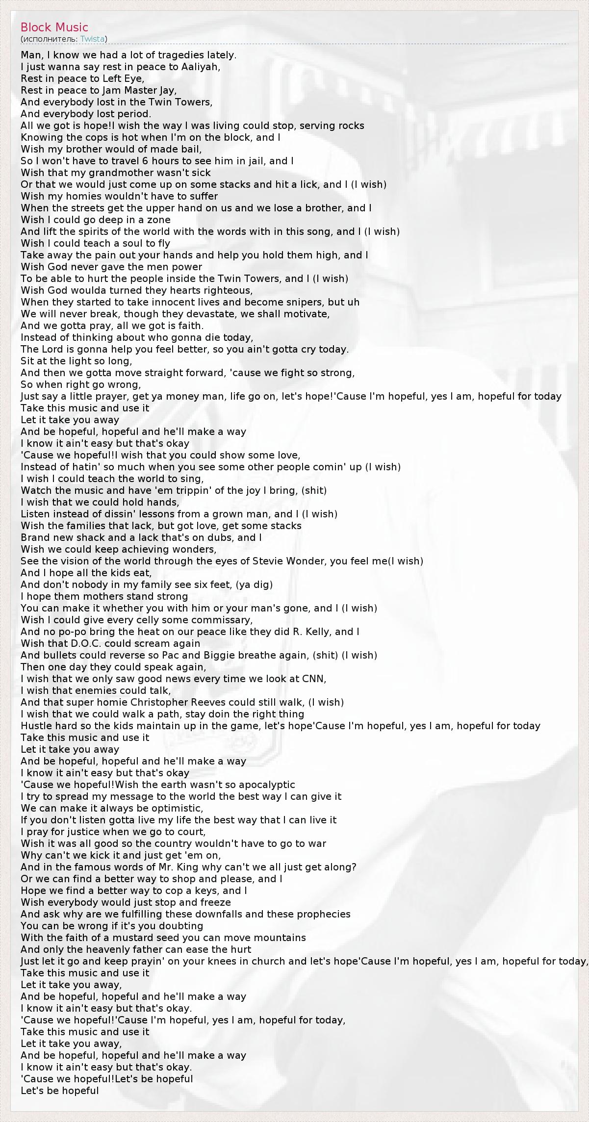 All we got is hope!I wish the way I was living could stop, serving rocks