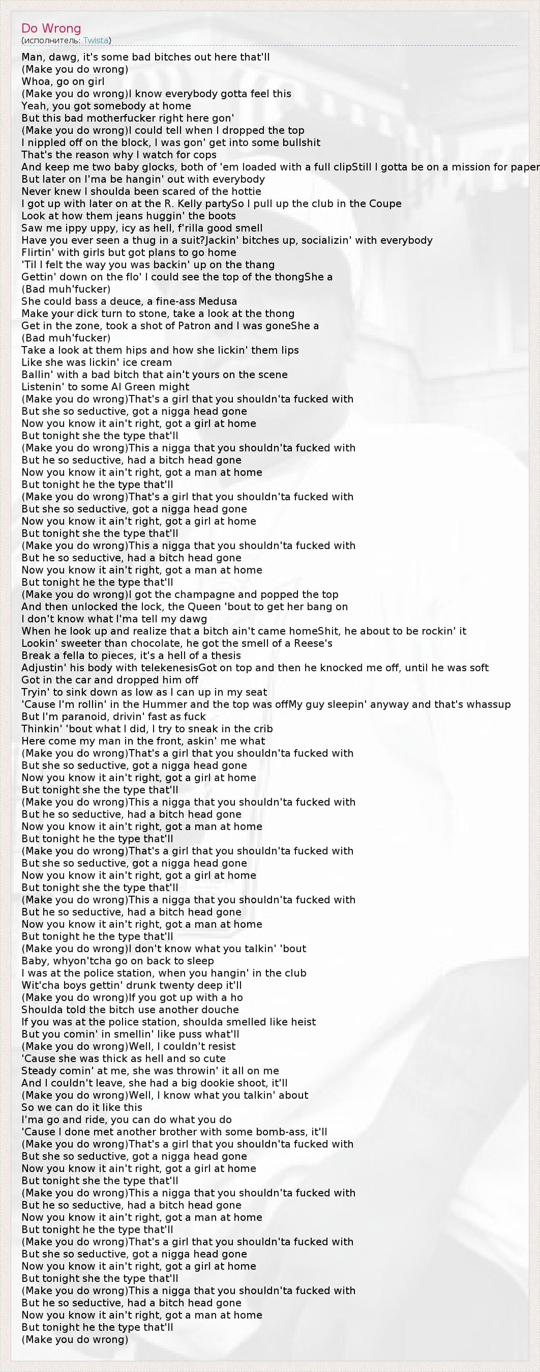 А как ты думаешь, о чем песня "Do Wrong" ?