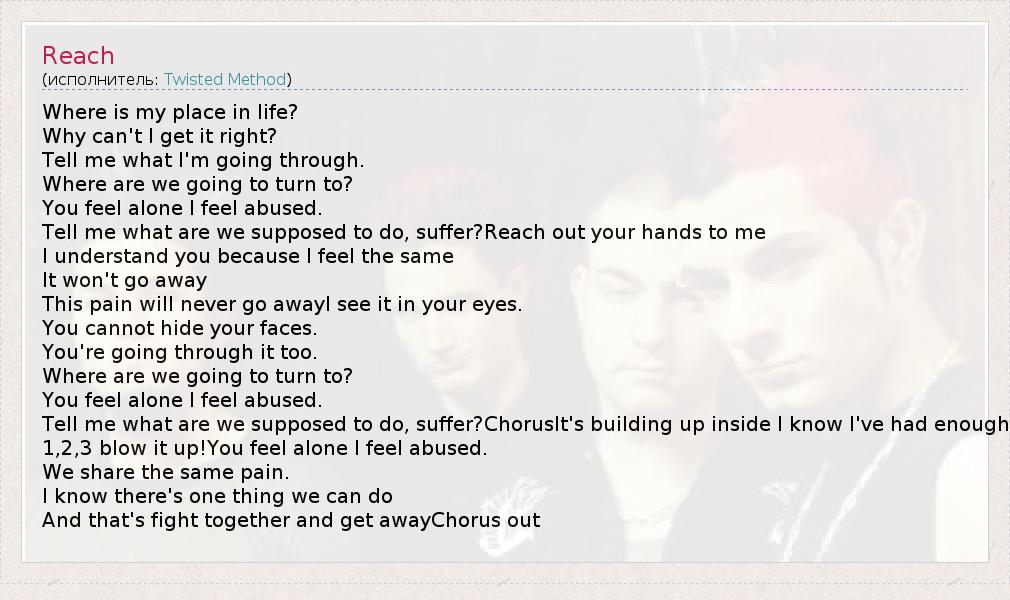 Это интересно:Всё началось еще в школе, когда гитарист Andrew Howard и барабанщик Ben Goins решили собрать группу. Им в то время было по 14 лет. Потом они нашли басиста - Дерека ДеСантиса (Derek DeSantis), которому пришлось заложить свою приставку Playstation, чтобы купить бас-гитару. Последним к группе присоединился человек по имени Tripp, или Derrick Tribbett. После этого, повыступав по барам и выступив на разогреве у группы Cinder, уже... продолжение