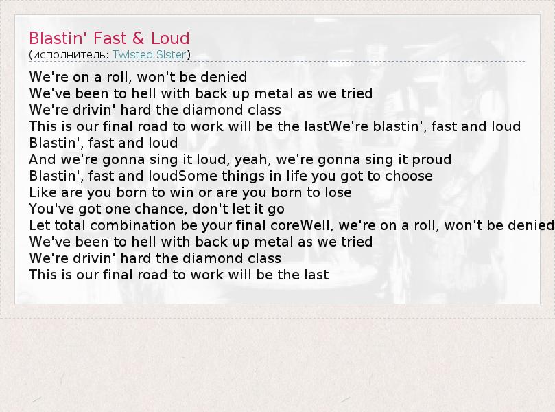 А как ты думаешь, о чем песня "Blastin' Fast & Loud" ?