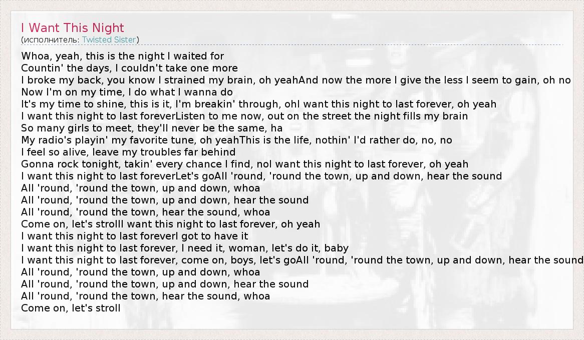 А как ты думаешь, о чем песня "I Want This Night" ?