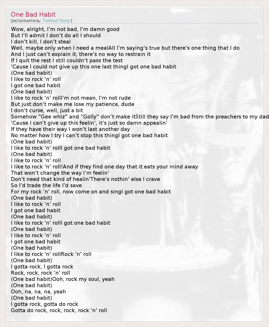 For my rock 'n' roll, now come on and singI got one bad habit