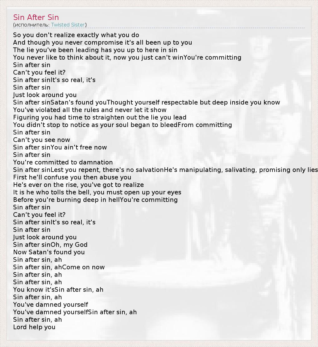 А как ты думаешь, о чем песня "Sin After Sin" ?