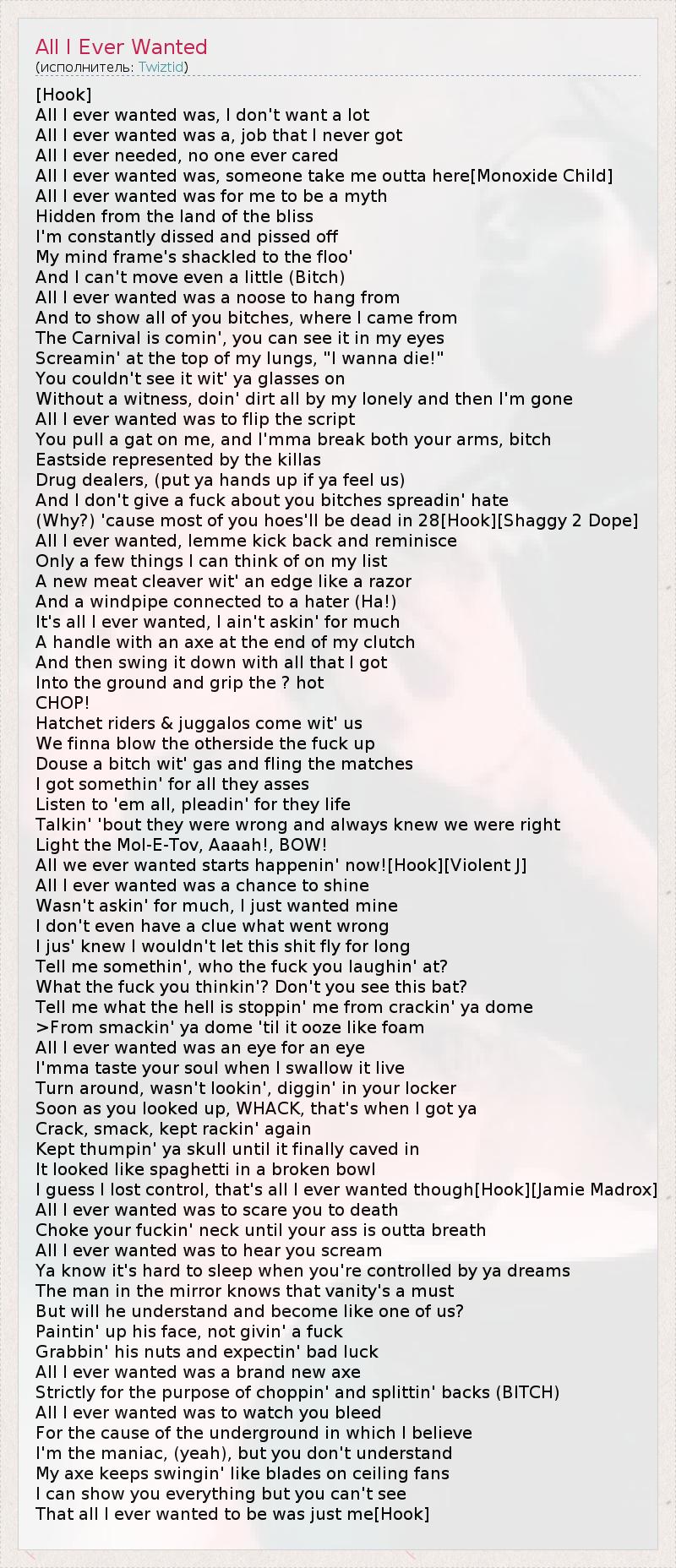 А как ты думаешь, о чем песня "All I Ever Wanted" ?