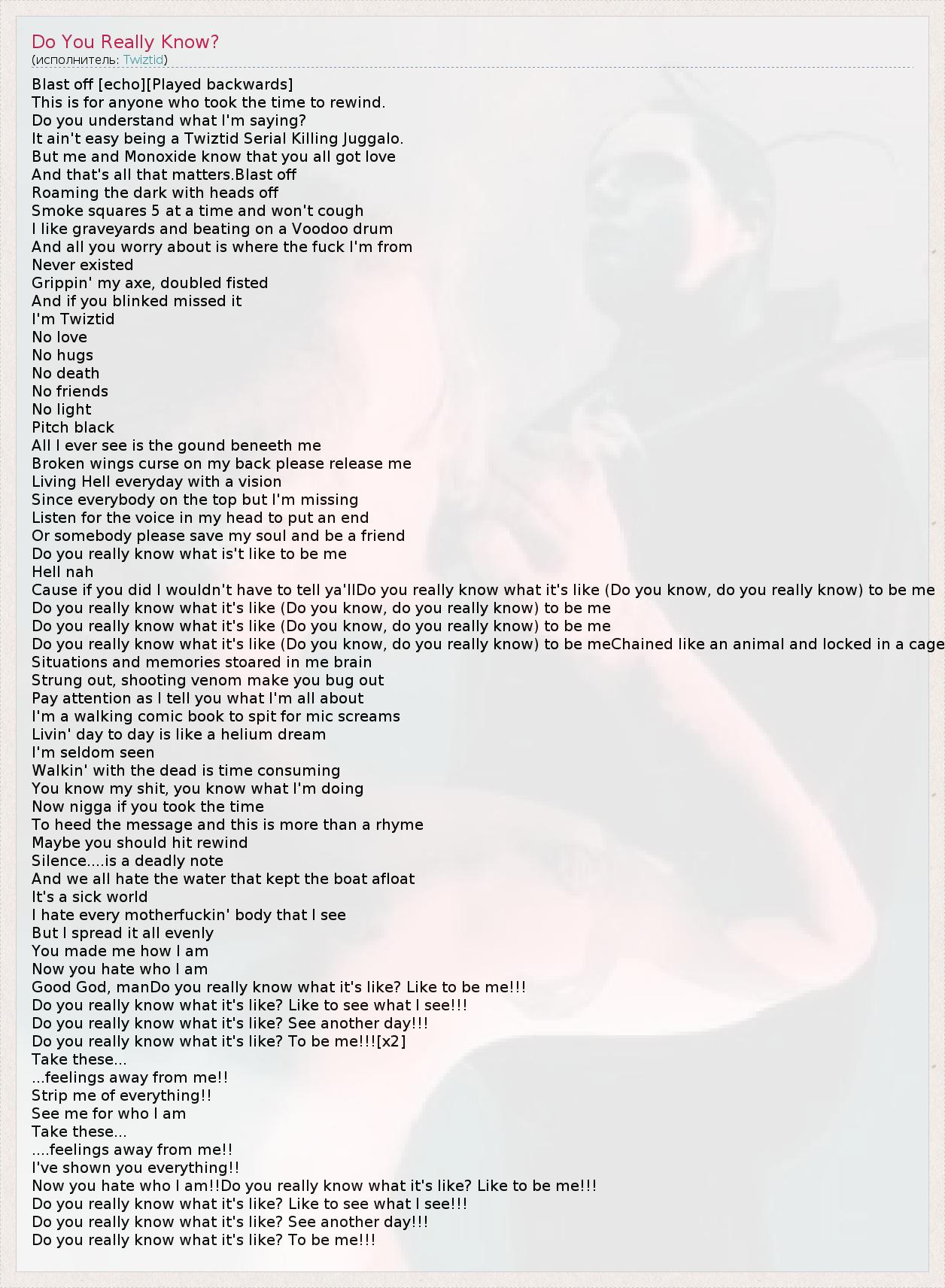 А как ты думаешь, о чем песня "Do You Really Know?" ?