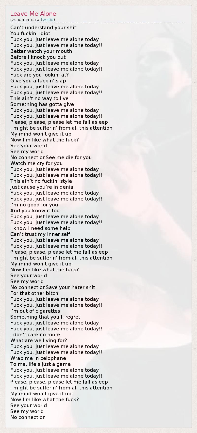 А как ты думаешь, о чем песня "Leave Me Alone" ?