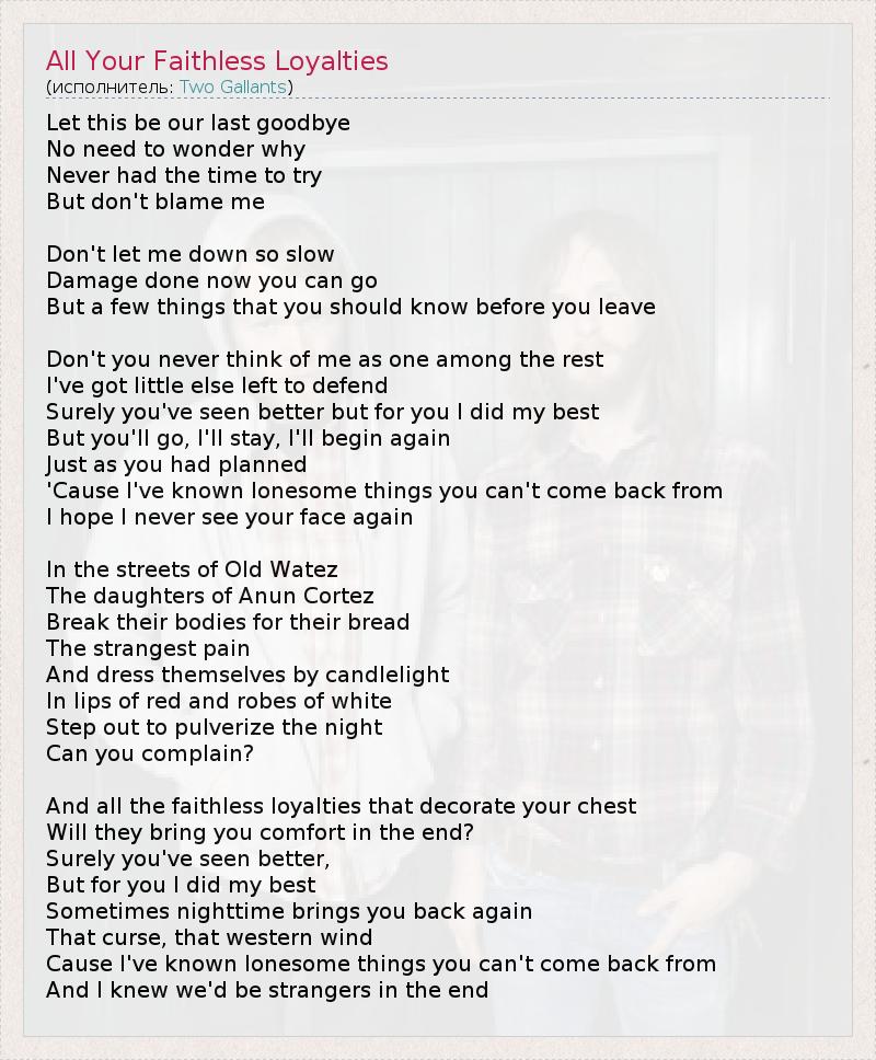 А как ты думаешь, о чем песня "All Your Faithless Loyalties" ?