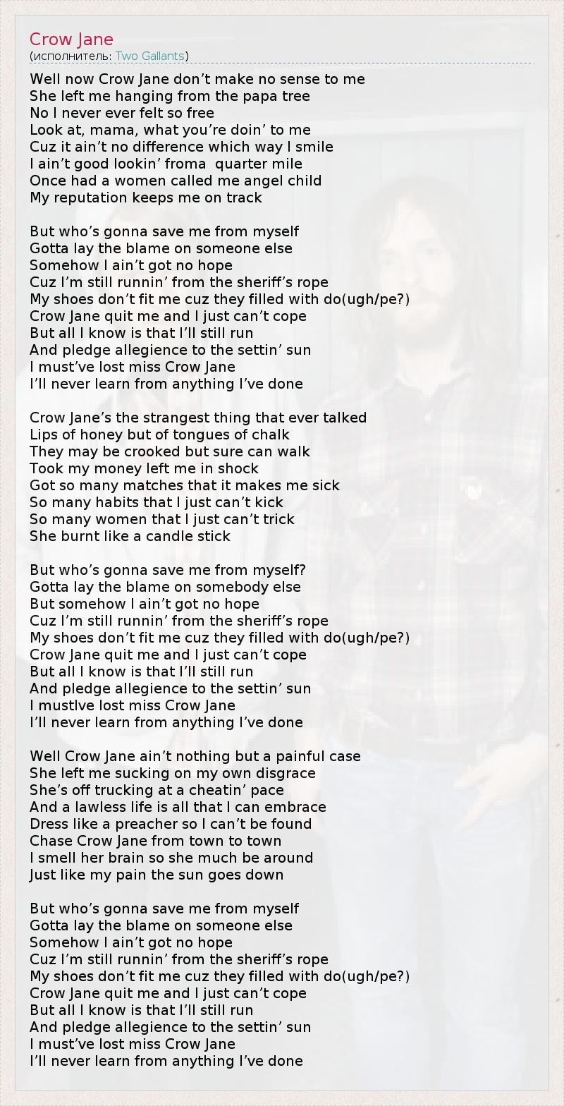 А как ты думаешь, о чем песня "Crow Jane" ?