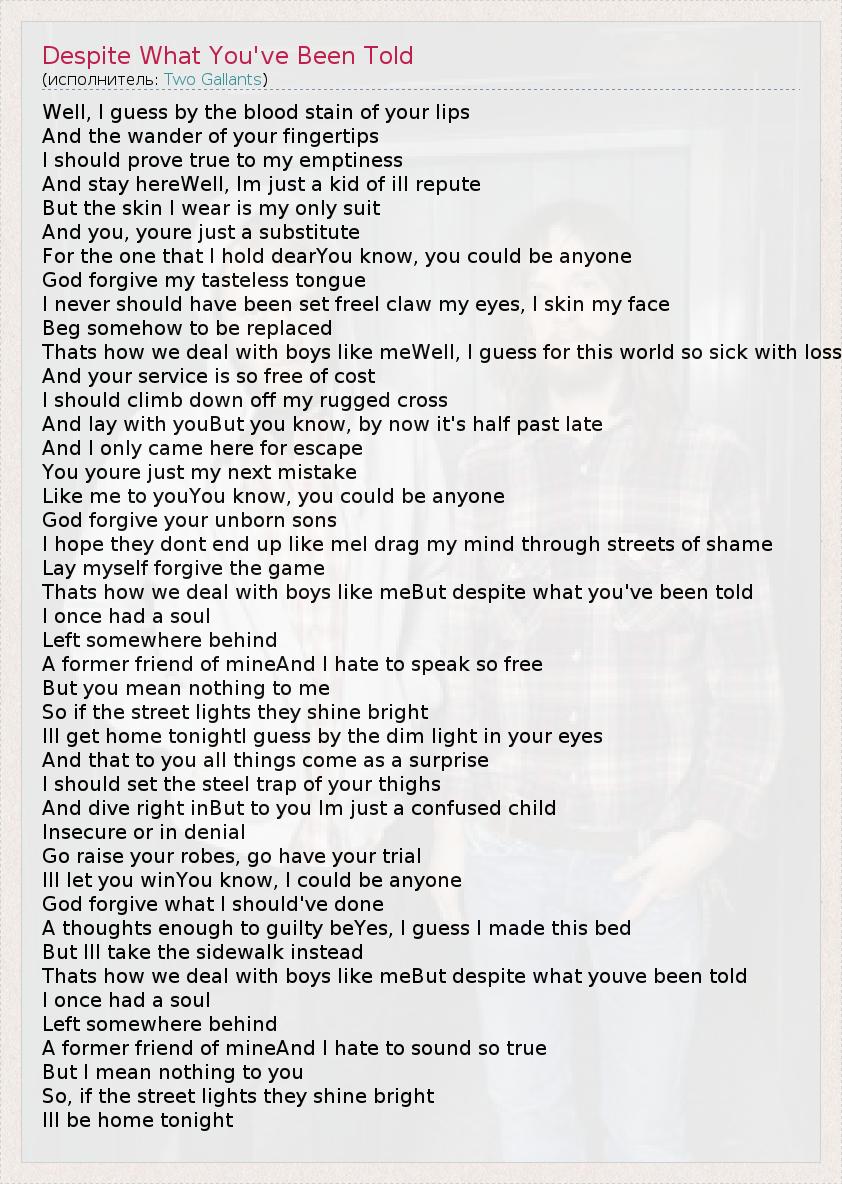 А как ты думаешь, о чем песня "Despite What You've Been Told" ?