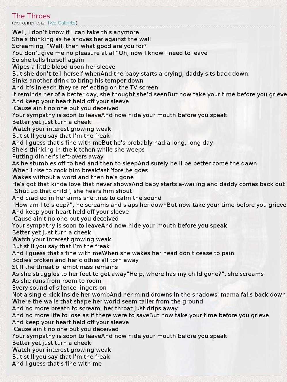 Not a single kick inside her wombAnd her mind drowns in the shadows, mama falls back down