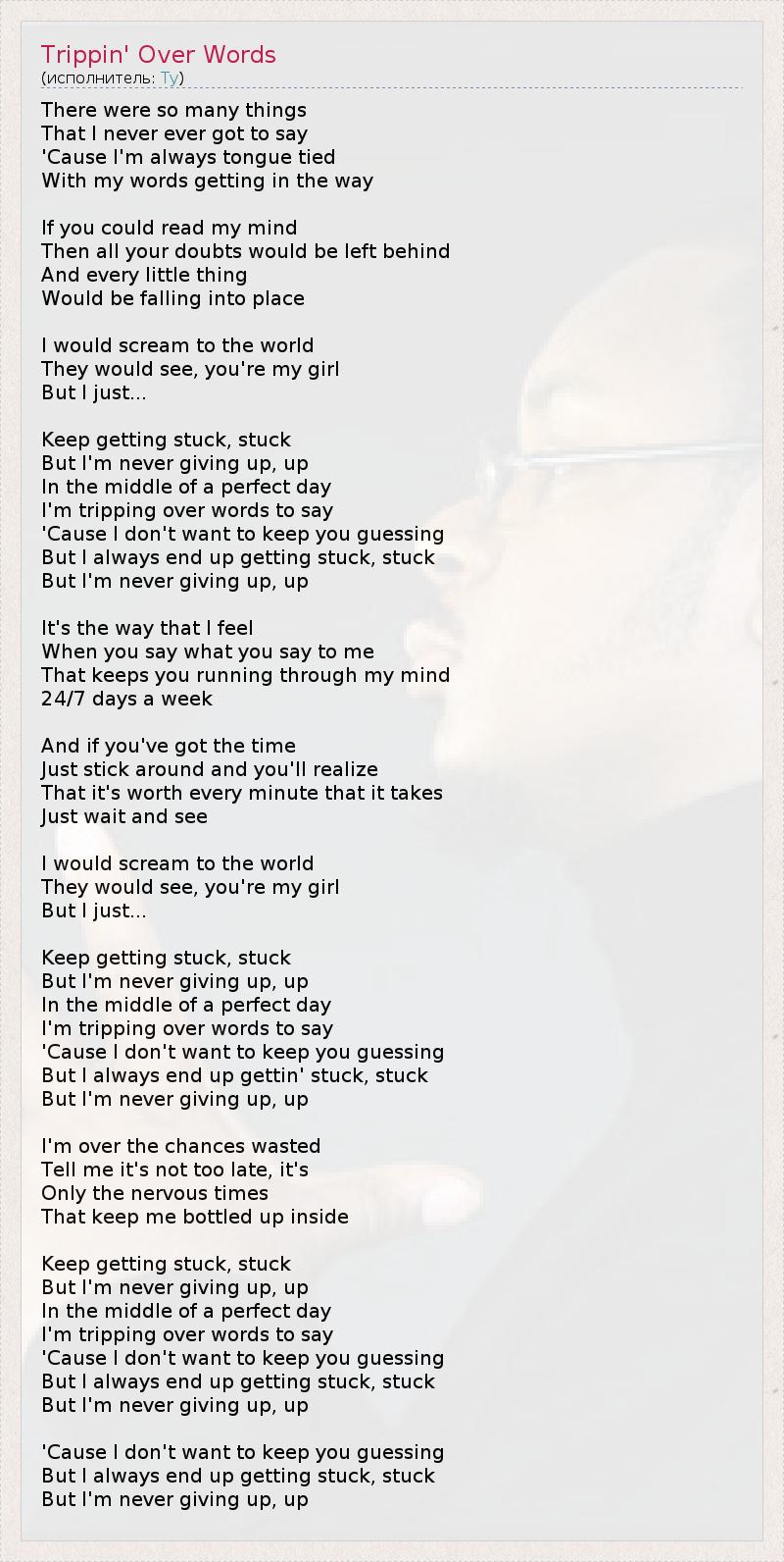 А как ты думаешь, о чем песня "Trippin' Over Words" ?