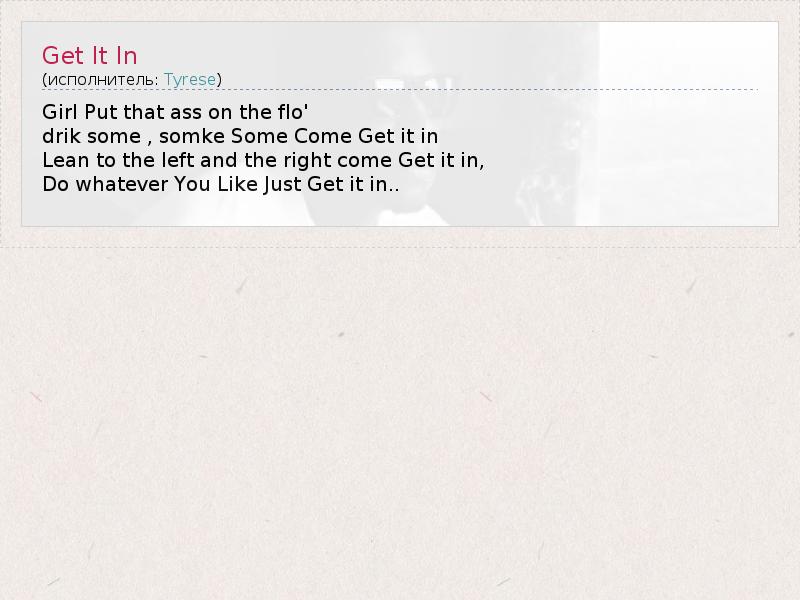 А как ты думаешь, о чем песня "Get It In" ?